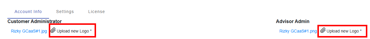 This is where you may edit administrator information, such as email and company name. You may also add a logo by clicking on the “Upload new logo” buttons.