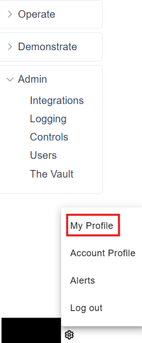 To enable TOTP MFA, first head into the “My Profile” section by clicking the gear on the bottom left.
