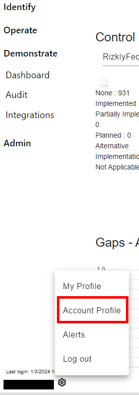 Rizkly has features to set up OIDC connection for your Rizkly tenant. To begin, head to “Account Settings” by clicking on the gear icon on the bottom of the left hand menu.